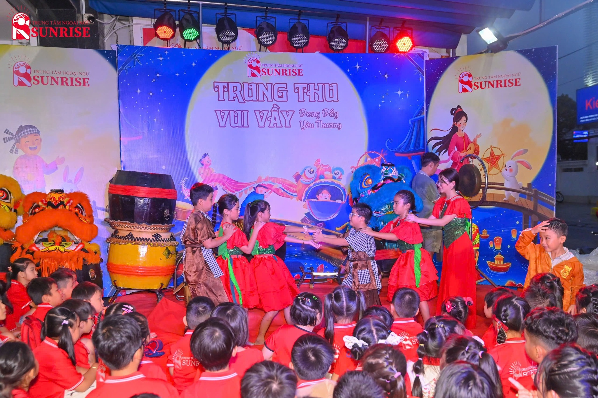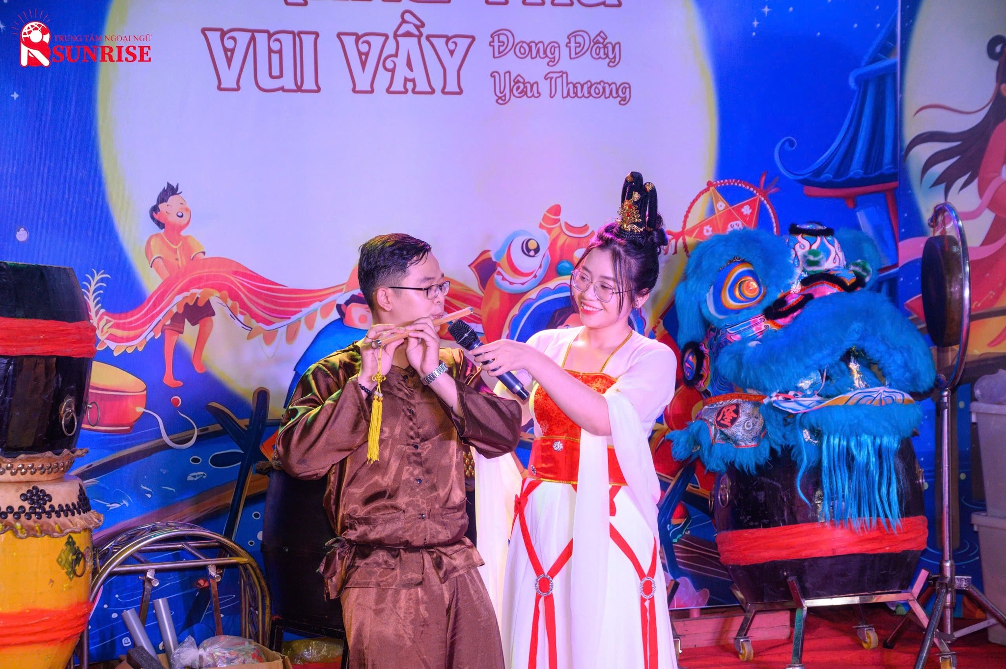 Chương trình còn có nhiều tiết mục văn nghệ đặc sắc do chính các học viên Sunrise biểu diễn, cùng phần biểu diễn thổi sáo của Chú Cuội, mang đến những phút giây thư giãn và ấm áp cho khán giả. Không thể thiếu trong đêm hội là màn múa lân sôi động, khuấy động bầu không khí và đem lại niềm hứng khởi cho tất cả mọi người.